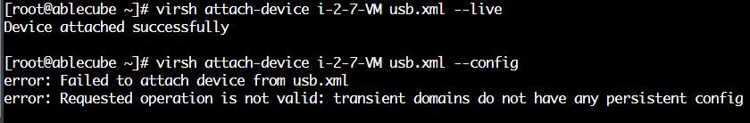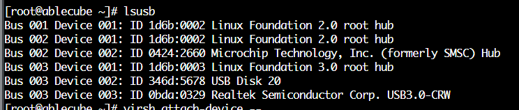 virsh attach-device <VM ID> usb.xml --live 로 운영 중인 VM 에 부착