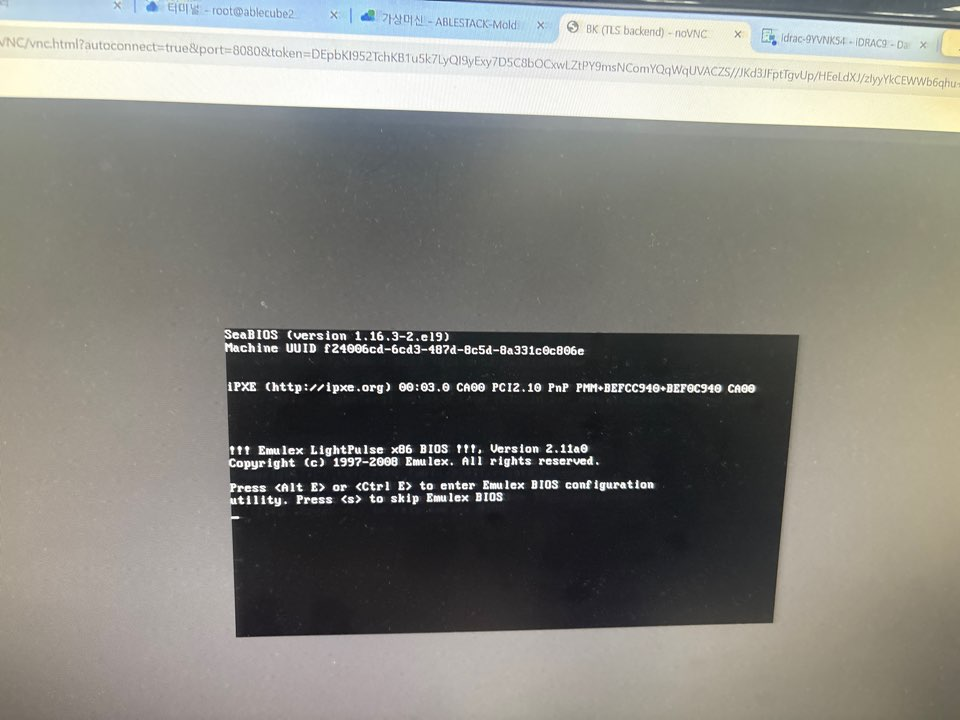 ABLESTACK에서 사용하는 BIOS는 SeaBIOS인데 해당 가상 BIOS는 위와 같은 HBA 카드에 대한 패스스루 연결을 완전히 지원하지 못합니다. 이러한 패스스루 연결이 필요한 경우 반드시 가상머신의 부팅 모드를 UEFI로 설정해야 합니다. (보안 기능이 필요 없다면 UEFI/LEGACY 선택)